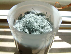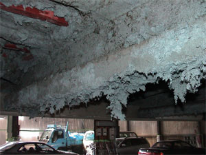 クロシドライト吹きつけ 劣化し垂れ下がった状態