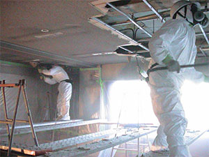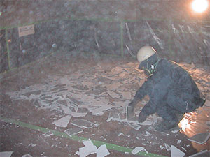 での石綿含有建材(岩綿吸音板)の破砕作業」