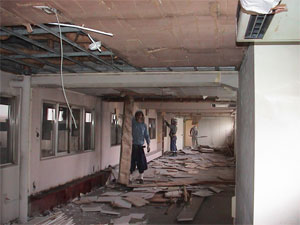 岩綿吸音板 クリーンルームを置いた全養生下でのバール破砕