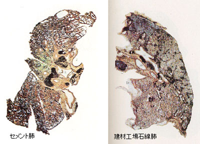 アスベスト建材を作っていた工場で長年くらい働いていた人の肺です(写真8)。