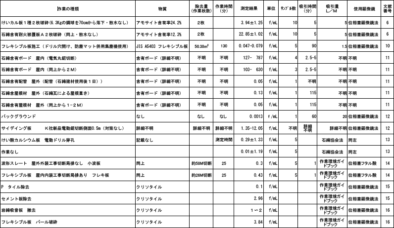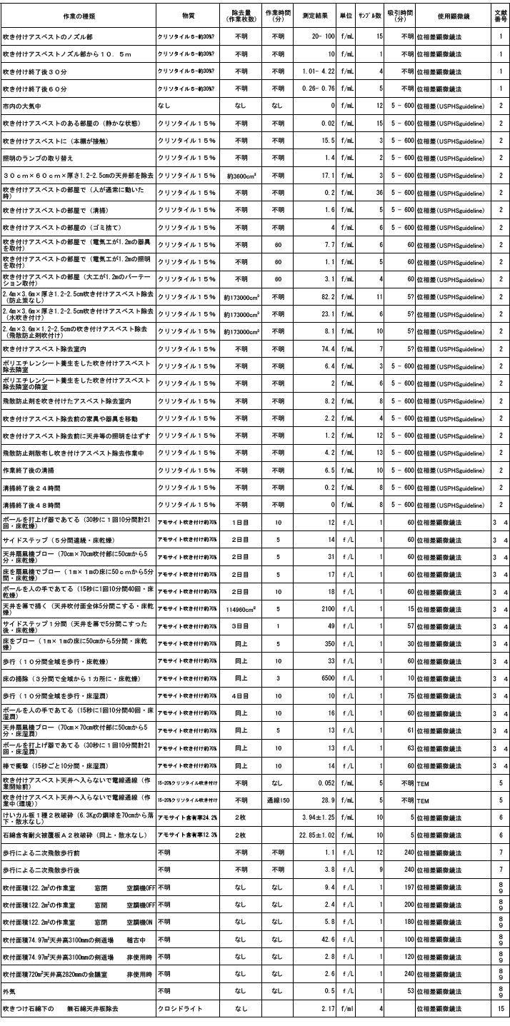 参考資料1 様々な建築作業での石綿(アスベスト)濃度