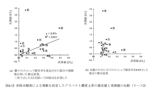 その数値を求めるために自分で吹き付けアスベストを使った飛散実験をやってもよかったのかもしれませんけど、その実験をやること自体リスクがある割に生産的ではないと思って、そういうアメリカの文献の数値を借りて計算しました。計算した濃度上昇分と実際の濃度上昇分を比べたら、オーダーが大体合っていたということで、飛散係数もやはりその程度だったのではないかと考えております。ですからその飛散係数が小さいという印象を持つのでなく、むしろ潜在的な蓄積量の大きさというのを考えるべきでしょう。そして、3千数百トンもある中からそれぐらい飛んだらこういう濃度になるのかということを、自分で算数をやって確認してみたということです。