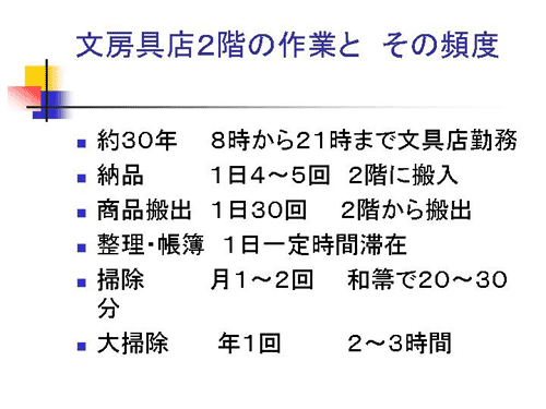 実際にはご本人は30年間、だいたい13時間くらい文房具店にいらっしゃって、納品や搬出それから掃除、帳簿といったことをしておられるわけです。