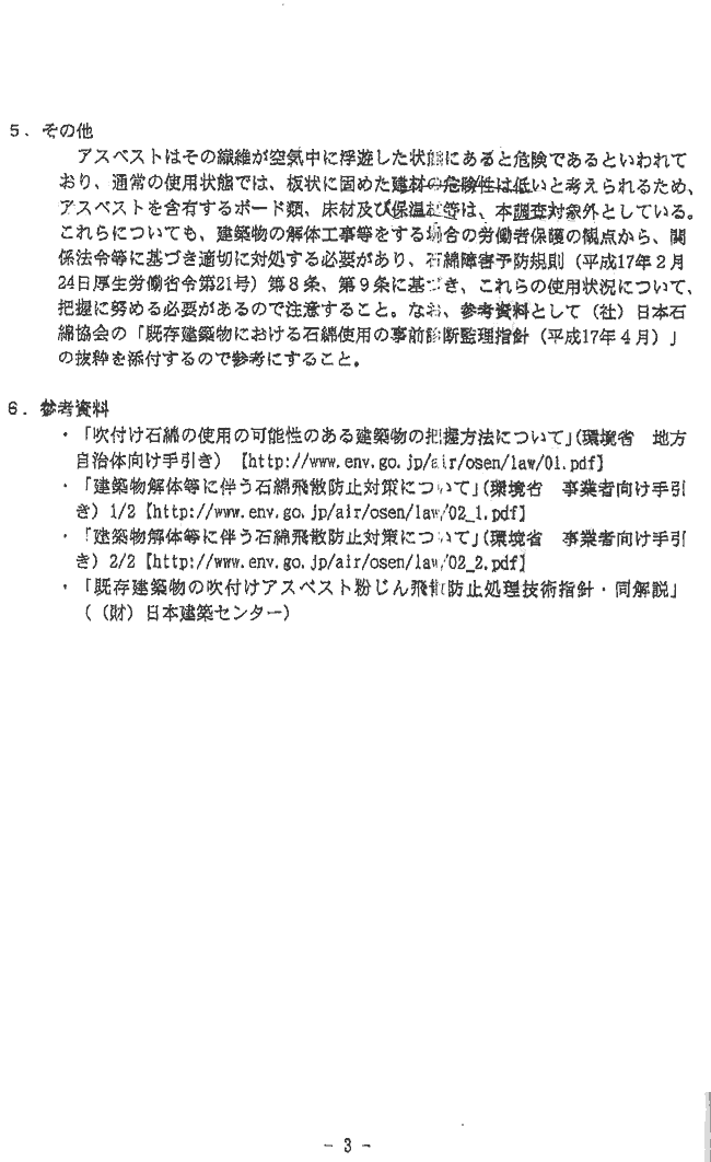 それから同資料の3ページ、「5.その他」で板状に固めたボードは対象から外すとなっています(資料/「文部省通達 3/3」)。
