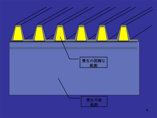 やはりこの切板の黄色い部分の養生をどう処理するか、密閉するかということが問題ですね。方法論としてはこの形に合った型枠をつくりまして、封じ込め材をあらかじめ負圧の中で加工し、貼り付け、周りをシーリングするぐらいのことをやらないと工事として成立しない。