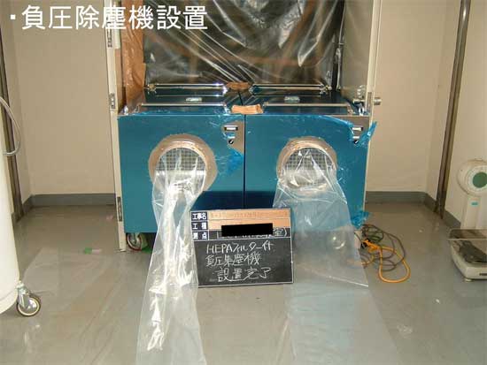 容量計算で1時間に4回以上現場の空気を入れ換える負圧集塵機をセットします。