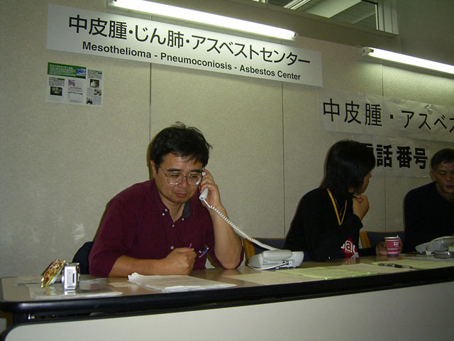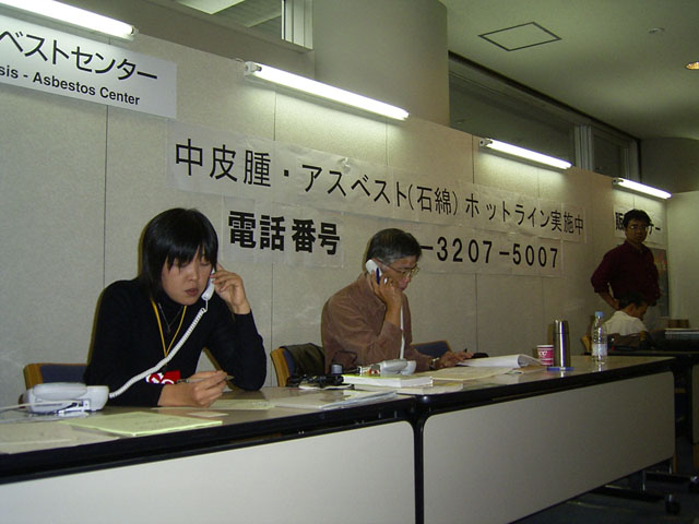 中皮腫・アスベスト・ホットラインを、国際会議場3階で開催しました(チラシPDF) (写真1、写真2)。